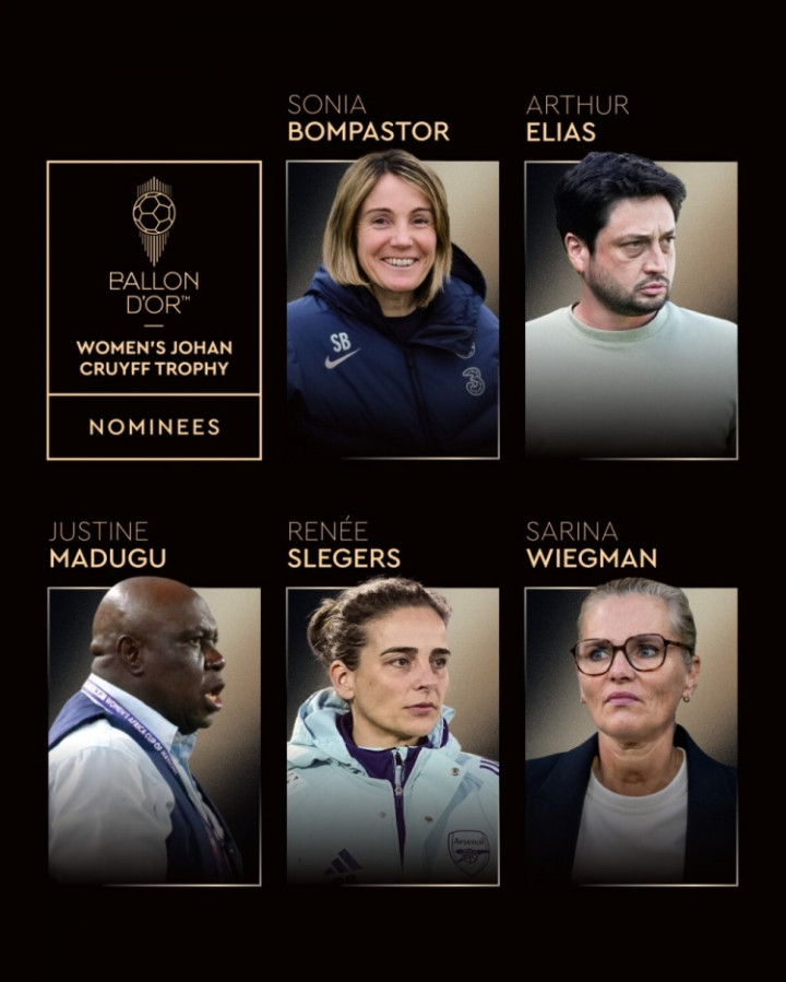 金球奖女足最佳教练候选: 魏格曼、斯莱格斯、邦帕斯托在列