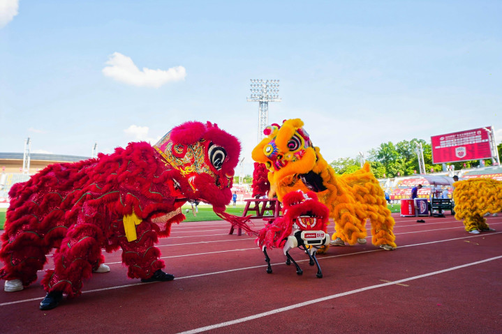 除了精彩的比赛,开幕式现场还将进行精彩纷呈的各类活动和表演,包括展现岭南风情的醒狮,演唱省超主题曲《我们的球队很闪亮》以及充满活力的客家歌舞《相约梅州》。球迷朋友还可参与现场抽奖,有机会赢取手机、餐饮现金券等丰厚奖品。开幕式现场最吸睛的莫过于一只装扮成醒狮模样的机器萌宠——联想晨星六足机器人。
