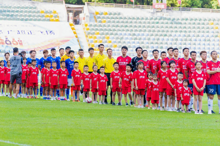 8月9日,预赛阶段的揭幕战落户“足球之乡”梅州赛区梅县是中国著名“足球之乡”,也是广东“南派足球”的重要起源地之一。近年来,梅州市在职业足球、校园足球、社会足球全方面发力,成为国内举足轻重的一个足球重点发展城市。为此,本届省超联赛把梅州作为一个重点赛区也是顺理成章的事情。本次预赛开幕式以“南派足球超粤梦想”为主题。