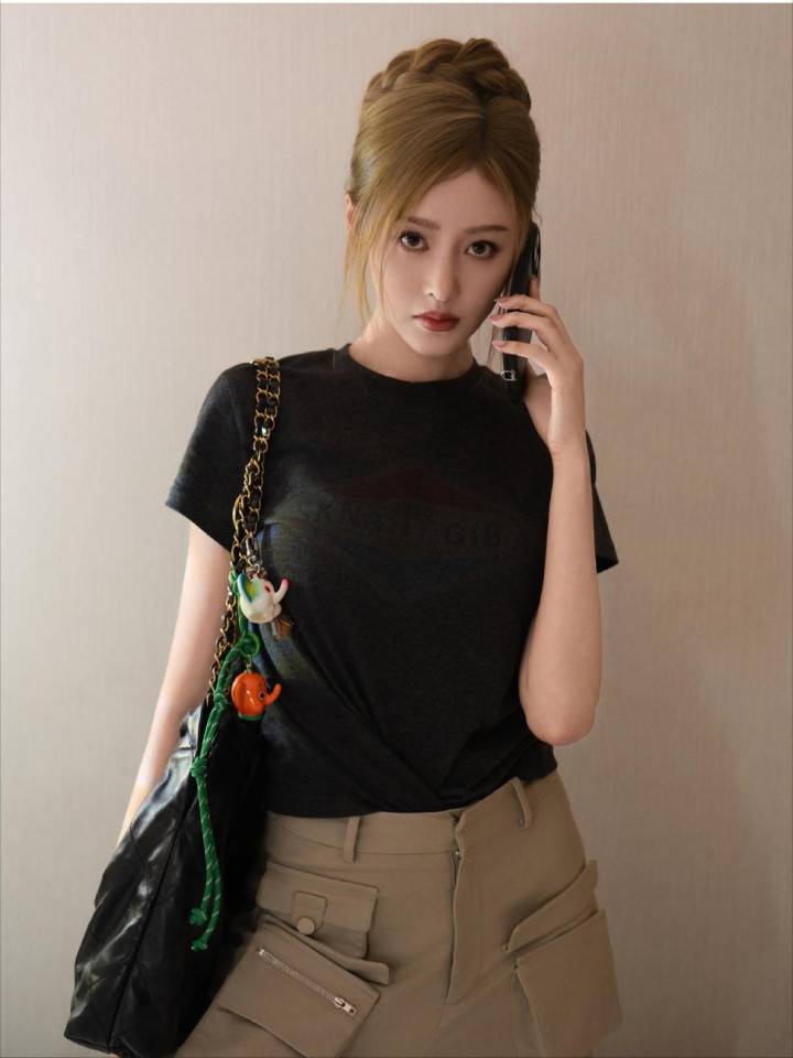 她带火了一种 “上身去蹦迪,下身去开荒” 的新穿法,把看似不搭的单品混搭出高级感。短款上衣卡在腰最细处,高腰工装裤提升腿长,小个子女生借鉴这 “上短下长” 的搭配技巧,瞬间能拥有大长腿既视感。