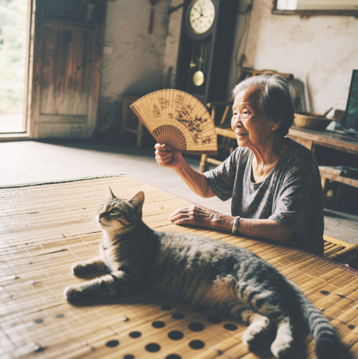 空气里,晒透的棉絮味混着墙角苔藓的潮气,稠厚得如同新熬的糖稀,每一次呼吸都带着黏滞的撕扯。人立在院中,不消片刻,汗便从背心洇开,汗珠顺着脊沟蜿蜒而下,滞涩地勾出一道道曲折的银线。竹席上的老猫,四肢摊开如一张毛毡,尾巴也懒得摇,只胡须随着微弱的呼吸轻颤。苍蝇飞得跌跌撞撞,翅膀仿佛被无形的浆糊黏连,那缓慢滞重的轨迹,看得人心头发紧。