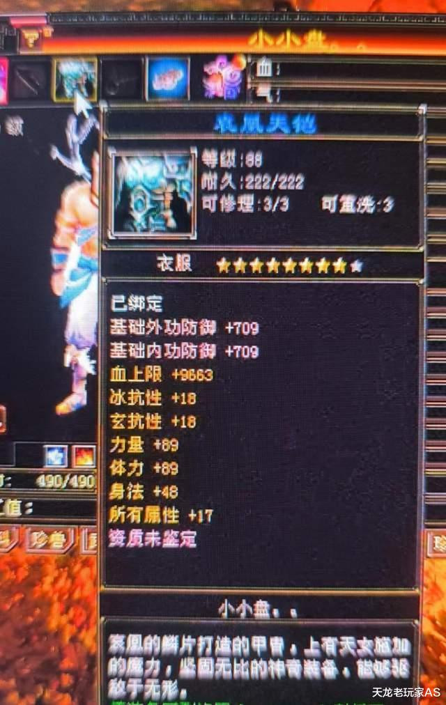 血上限、冰火玄毒18、体力87!虽然是浅蓝的,但是是少见的四抗血衣啊~
