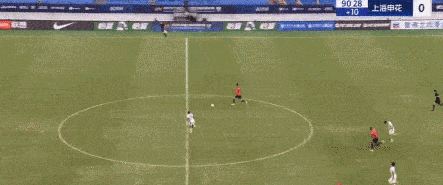 可以换个视角再来看看张弛中圈射门的过程,当他跑到中圈时,薛庆浩还在禁区外有点距离的地方往回跑,所以他才选择射门,可惜这脚射门力道角度都不行,被回防的薛庆浩接收。
