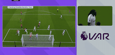 第34分钟,曼联获得角球,富勒姆禁区内两组球员纠缠,4人相继倒地。VAR介入,通过慢镜头可以清晰看到,卡尔文·巴锡一个标准的抱摔动作,将芒特放倒,裁判吹罚点球。