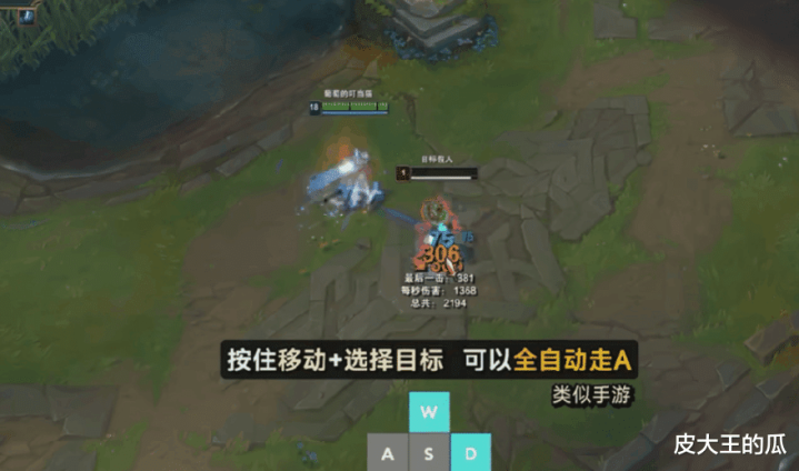 除了移动方式不同之外,WASD操作模式下,玩家使用非指向性技能的时候,技能会自动朝向鼠标指针所在的位置,几乎可以达到指向性技能的效果,大大降低了操作难度的同时,更是可以实现脚本级别的抽搐式走位,ADC更是可以实现无压力高攻速走A。