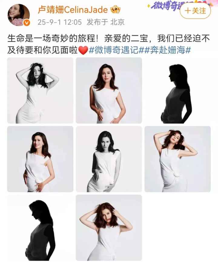 9月1日,知名男星韩庚的妻子卢靖姗在个人社交平台上,晒出一组孕期大片,并配文:生命是一场奇妙的旅程,亲爱的二宝,我们已经迫不及待要和你见面了。”