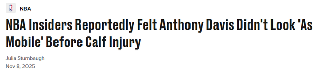 北京时间11月8日,独行侠用东契奇换浓眉的交易,是不是史上最蠢的交易?据The Athletic记者Clark报道,在独行侠队上周官宣浓眉因小腿受伤将缺席多场比赛之前,已有多位NBA内部人士察觉到他的移动速度出现了下滑。
