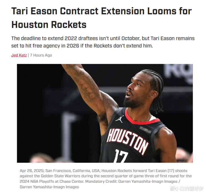 休媒催促火箭快续约伊森: 防守特质明夏会引多队哄抢 专家建议4年9000万