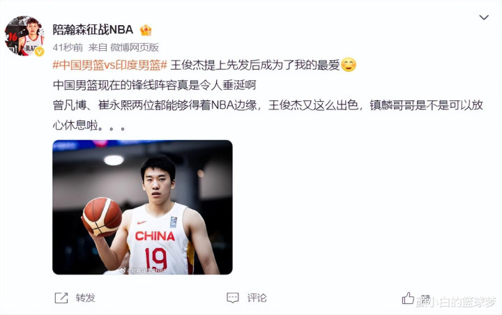 博主:王俊杰提上先发后成为我的最爱,未来男篮的锋线令人垂涎欲滴:曾凡博、崔永熙、王俊杰。