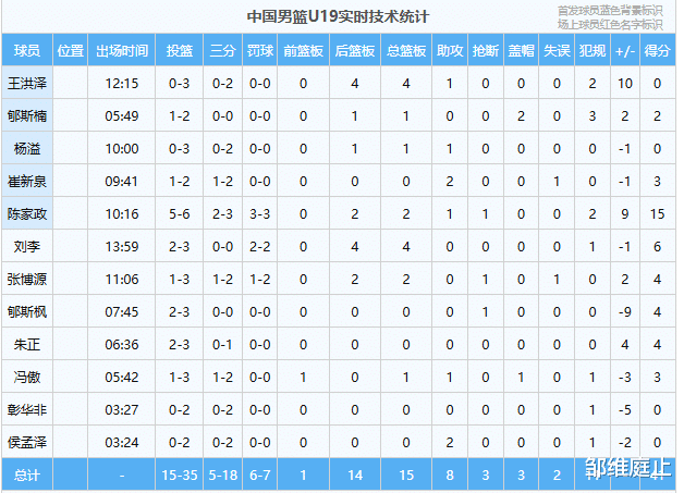 中国队大名单:后卫:1-朱正、3-杨溢、15-侯孟泽;锋线:11-张博源、9-冯傲、5-陈家政、6-崔新泉、8-彰华非;内线:10-郇斯枫、12-郇斯楠、13-王洪泽、14-刘李。首发:王洪泽、郇斯楠、杨溢、崔新泉、陈家政