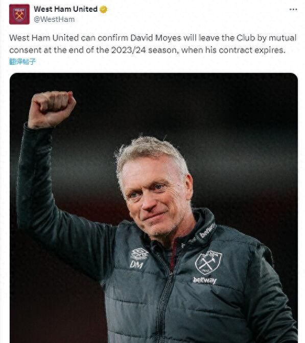 在去年的5月,西汉姆宣布将在赛季末与功勋主帅莫耶斯分手。那时候的莫耶斯,是西汉姆场均得分最高的主帅(执教20场以上)。他还率西汉姆得到队史最高的英超排名,并连续两年进前7。此外他还帮助铁锤帮夺得欧协联冠军,这也是西汉姆自1980年的足总杯后的第一个重要赛事冠军,也是球队自1965年来的首个欧战奖杯。