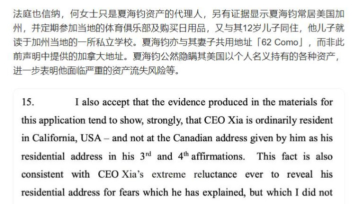香港高等法院的判词进一步揭露了夏海钧的隐匿行踪,他曾向法庭提供加拿大地址,试图误导调查。