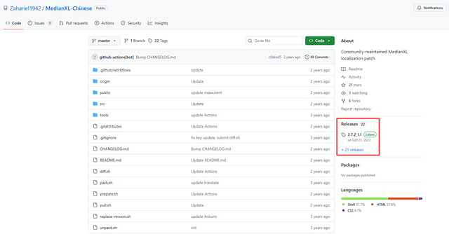 进入github页面,在屏幕右侧找到“Releases”标签。在它下方会有一个“Latest”标记,单击它进入下一个页面,这是当前最新版的详细介绍页。滚动鼠标来到页面最下方的“Assets”,然后右键“Release.zip”下载它。