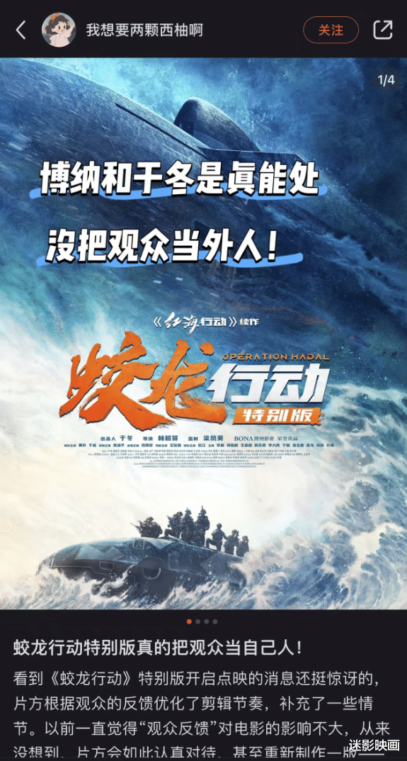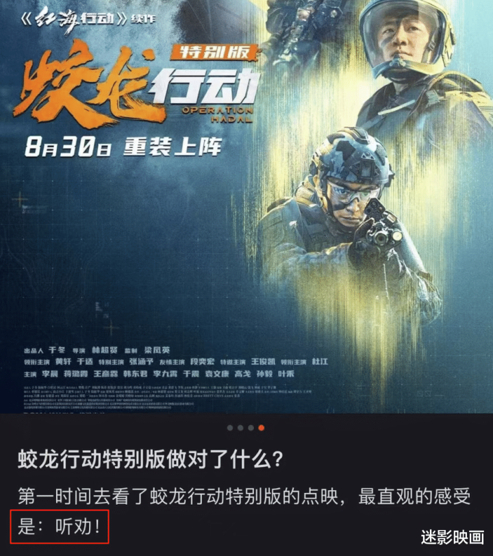 其实大部分时候,作为强势一方,电影片方都是高高在上的态度,观众提意见要么被当成杠精,要么被说不懂电影。但《蛟龙行动》的团队不一样,他们真的把观众当成了合作伙伴,把观众的建议当成了改进的方向。