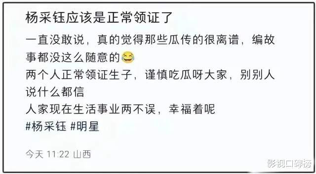 在大家印象中,明星结婚都是会官宣,举办豪华的婚礼,然后会收到很多祝福。杨采钰则没有晒结婚证,也没有官宣。有网友留言:领证了,她应该会晒吧!杨采钰回复:哦?只有一个字的回应,让人感觉挺模糊的,网友更加好奇她的实际情况。