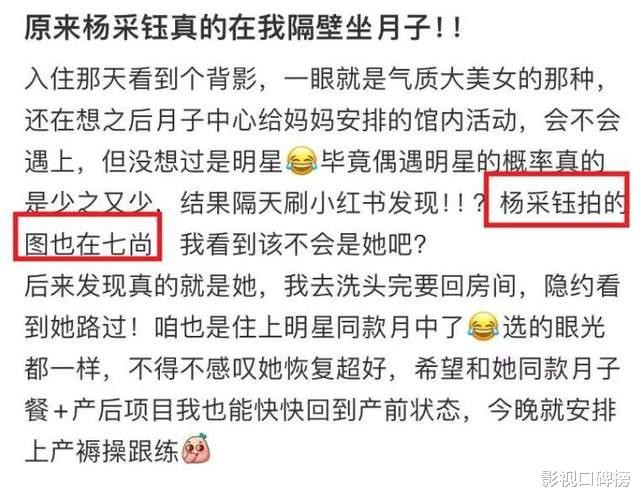 看到杨采钰晒出照片后,有网友留言表示,她与杨采钰同坐一个月子中心,价格是50万。