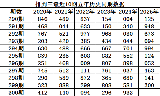 上期回顾:排列三第2025299期奖号:300,组三,直选遗漏总值为40期。