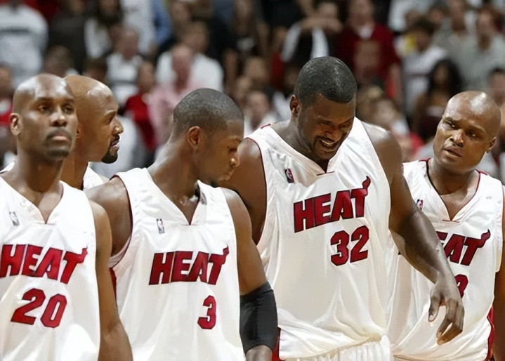 06-07赛季,热火仅有44胜38负,鲨鱼日渐衰老,沃克、佩顿等老将状态大不如前。季后赛直接被公牛4-0横扫出局,也成为当时第一支被横扫的卫冕冠军。