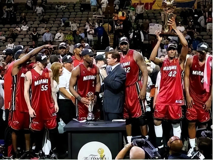2006年总决赛52胜热火面对西部第二、联盟第三的60胜小牛,在0-2落后的情况下凭借韦德的天神级发挥连扳四场,最终4-2拿下队史首冠。