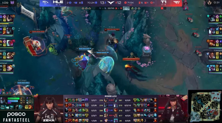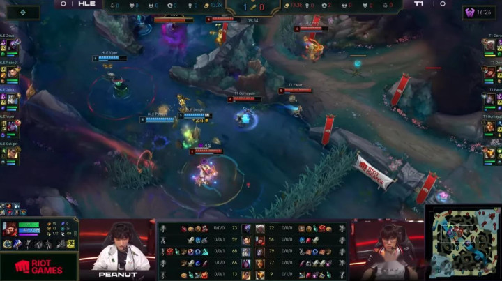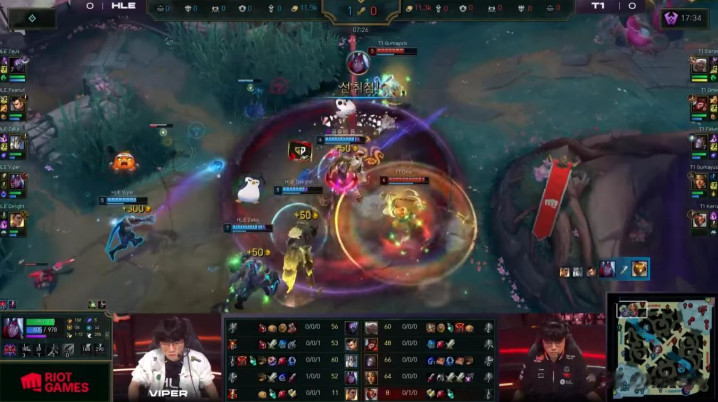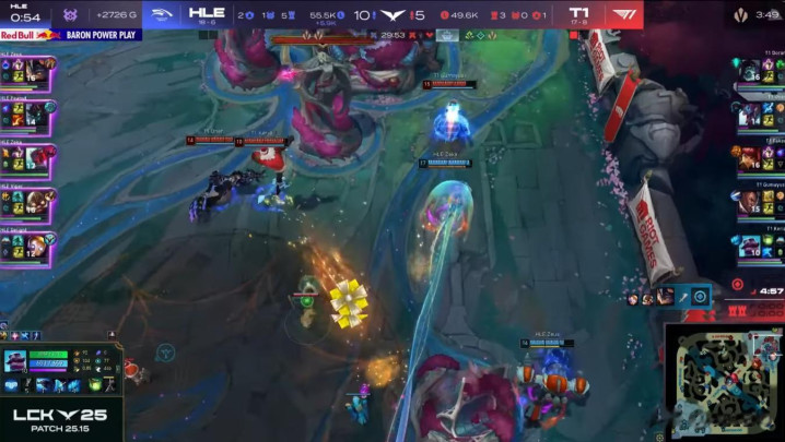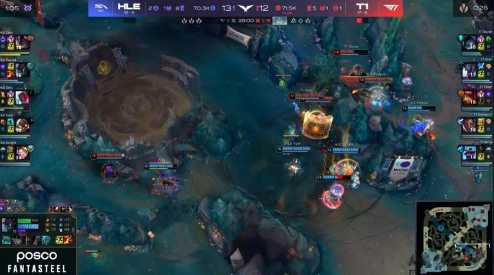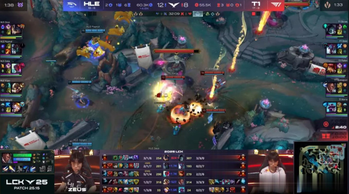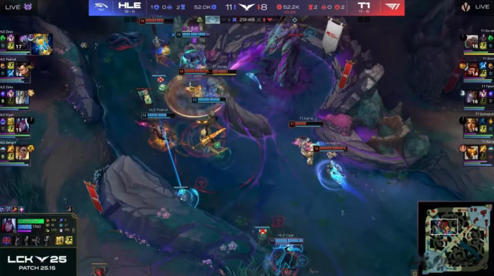 然而,HLE做出了回应。他们不仅通过自己的角度挽回了劣势局面,还能在看似对T1有利的交战中找到重新接战的角度。HLE能在这种情况下与T1展开全面战争,并在消耗战中领先,证明了他们在过去几周状态的提升。
