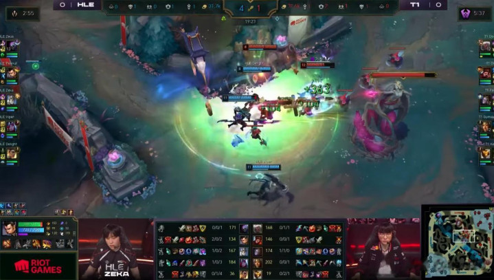 这场比赛没有以一个“这就翻了”的震惊时刻结束。这是因为T1打出了一场非常好的团战,而HLE没有。兰博被牵制了,永恩对约里克毫无作为,飞机被孤立并被秒杀。用一个不太恰当的说法,这不是一场“正式”的团战。HLE过于激进了。确实有两次HLE的阵容看似对T1有“不可阻挡”的优势。一次是在T1的下路内塔附近,另一次是在T1的中路内塔附近。但HLE两次机会都搞砸了。