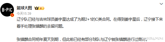 张镇麟目前处于合同期内(明年夏天到期),但此前已经有部分球队与辽宁就张镇麟进行过商讨。