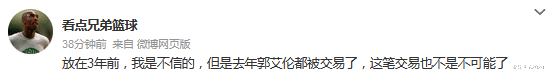 有球迷点评说道:放在3年前,我是不信的,但是去年郭艾伦都被交易了,这笔交易也不是不可能了 。