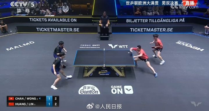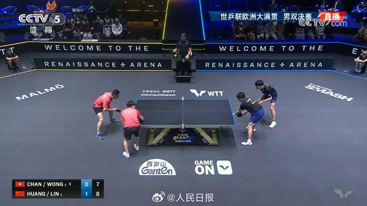 WTT欧洲大满贯瑞典站男双决赛,中国香港队组合黄镇廷/陈颢桦战胜国乒组合林诗栋/黄友政,夺得冠军。