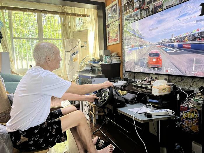 在外孙眼中,外公在游戏世界里始终是个“年轻人”:“外公从不沉迷游戏,他非常自律,每天下午三点打游戏,晚上九点半休息。他不会开车,却能在游戏中开得比我还好。”