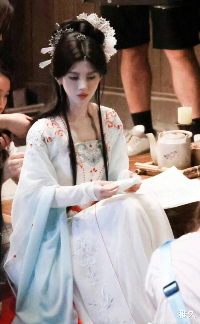 这组照片是鞠婧祎在拍摄新剧《月鳞绮纪》时的路透照。在剧中,她饰演女主角露芜衣,一个机智勇敢、充满魅力的女子。此次曝光的嫩粉色古装造型,正是露芜衣在剧中的一款经典服饰。只见鞠婧祎身着粉色襦裙,裙摆绣有精美的暗纹,随着她的走动轻轻摇曳,宛如花瓣飘落。她的发髻高高盘起,簪着粉白相间的绢花,耳畔的碎发也被细心卷出弧度,完美复刻了唐代《簪花仕女图》中的慵懒贵气。