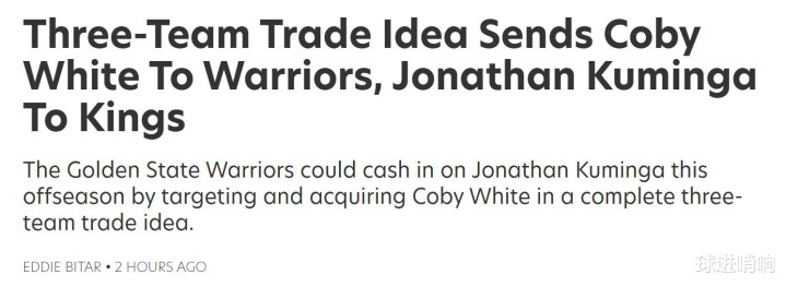 各取所需! 美媒晒3队5人交易方案: 国王如愿得库明加勇士迎两新援
