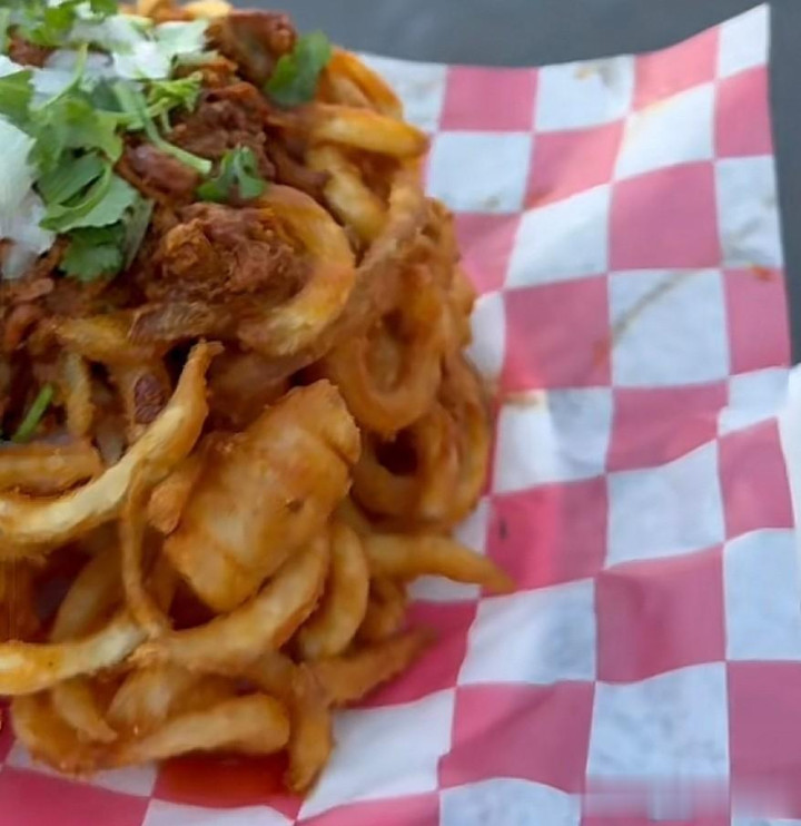 李小鹏坐在缆车上就看见下面有卖美食的摊位,他和老婆孩子下来以后马上去买吃的,现场制作看着很过瘾。孩子们爱吃的蔬菜肉串还有炸薯条都买了,出来玩不需要刻意做身材管理,吃得开心才更放松。