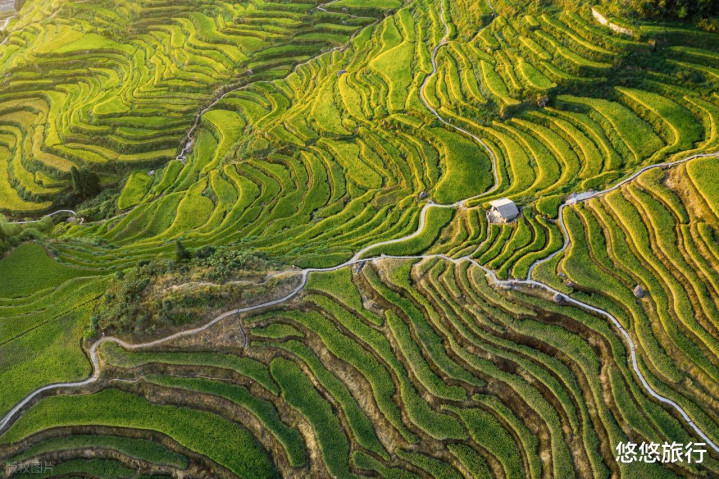 云和梯田10月底才入秋,9月去,还能看到和夏天一样的绿色稻田,千层梯田如绿色台阶。