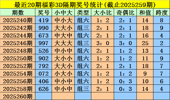 260期金心福彩3D预测奖号:大小奇偶跨度分析