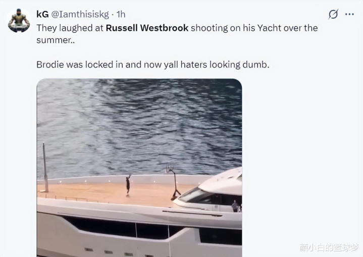 美球迷:休赛期很多人嘲笑威少在游轮上做投篮训练,如今威少用自己的表现 让那些嘲笑他的人像小丑。