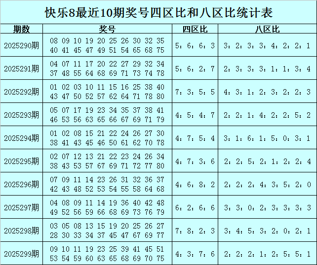 福彩快乐8第2025299期开奖回顾:09 10 11 19 23 25 39 41 45 51 53 54 59 60 63 65 68 69 70 75,其中奖号八区比为2:2:2:1:2:5:5:1。